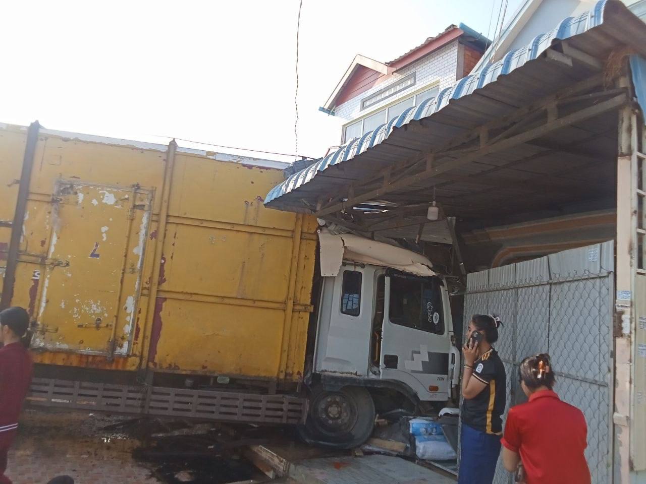 រថយន្តដឹកទឹកកកបុកជាមួយរថយន្តមួយគ្រឿង រួចបុកសំយ៉ាបផ្ទៈខូចខាត និងរបួសម្នាក់