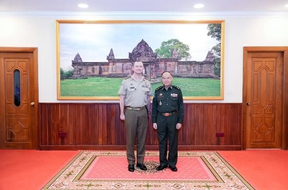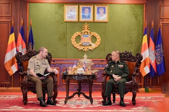 នាយឧត្តមសេនីយ៍ ម៉ៅ សុផាន់ អគ្គមេបញ្ជាការរងនៃកងយោធពលខេមរភូមិន្ទ មេបញ្ជាការកងទ័ពជើងគោកកាលពីថ្ងៃទី៣០ ខែមីនា ម្សិលមិញ បានជួបពិភាក្សាការងារជាមួយឧត្តមសេនីយ៍ទោ ជែល ខូលនីលា( GILES J.S. CORNELIA) មេបញ្ជាការរងកងទ័ពជើងគោកសហរដ្ឋអាមេរិក ប្រចាំតំបន់ប៉ាស៊ីហ្វិក ដោយកិច្ចជំនួបនោះភាគីទាំងពីរបាននិយាយគ្នាបន្ថែមទៀតទាក់ទងនឹងគម្រោងធ្វើសមយុទ្ធឆ្មាំអង្គរកម្ពុជា-អាមេរិក រួមគ្នា ដែលគ្រោងនឹងធ្វើឡើងលើទឹកដីកម្ពុជានាពេលខាងមុខនេះ។