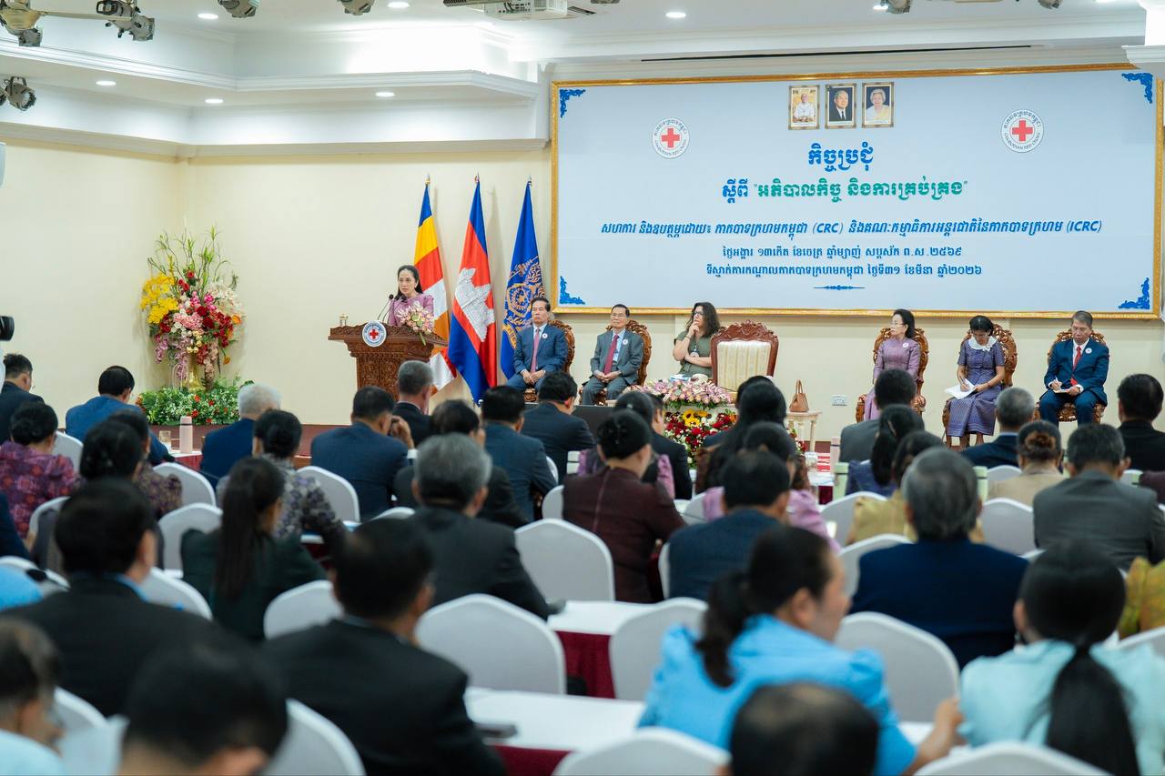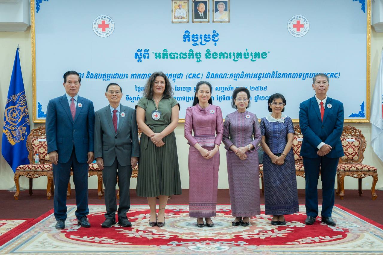 លោកជំទាវបណ្ឌិត ពេជ ចន្ទមុន្នី ហ៊ុនម៉ាណែត អនុប្រធានអចិន្ត្រៃយ៍កាកបាទក្រហមកម្ពុជា អញ្ជើញចូលរួមពិធីបិទកិច្ចប្រជុំស្តីពី “អភិបាលកិច្ច និងការគ្រប់គ្រង” ។