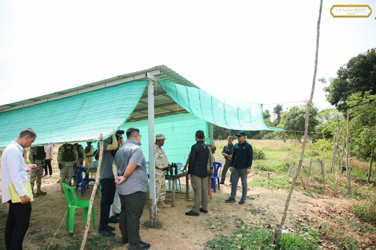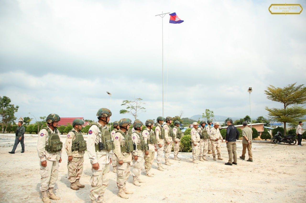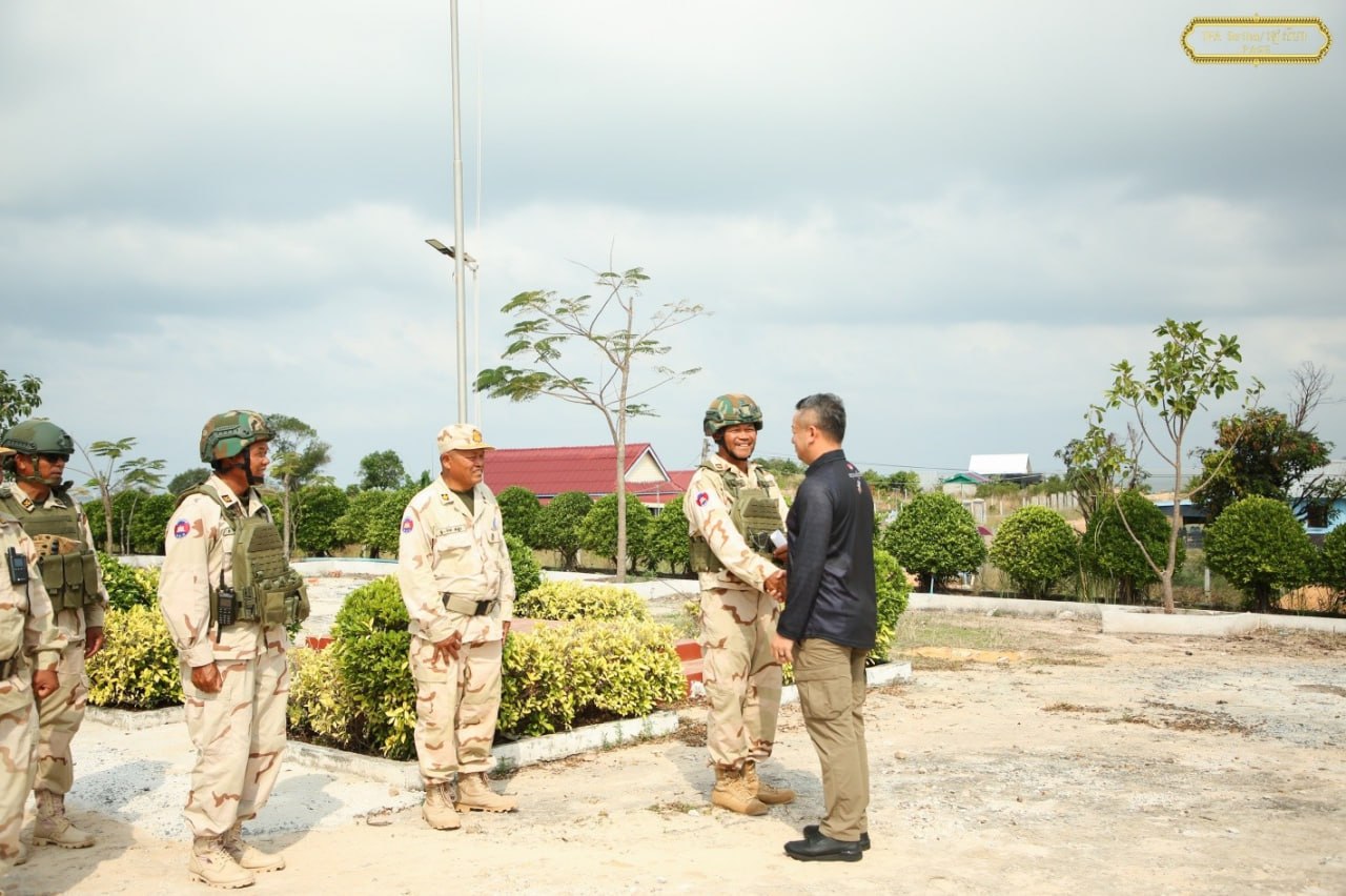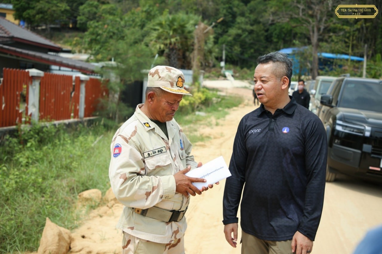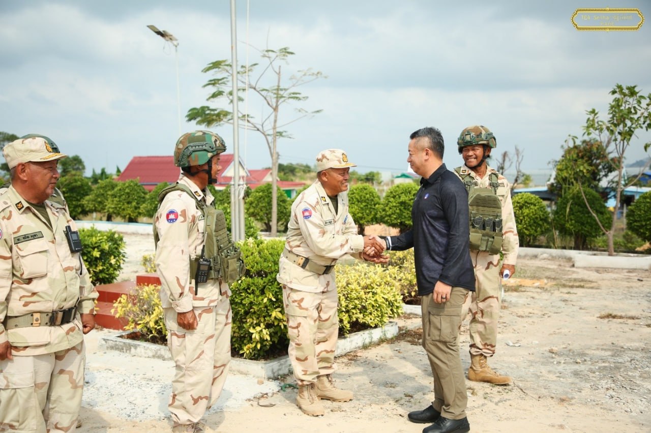 ឯកឧត្តម នាយឧត្តមសេនីយ៍ ទៀ សីហា បានចុះសួរសុខទុក្ខ និងជូនពរជ័យសិរីសួស្តីដល់យោធិនដែលកំពុងបំពេញបេសកកម្មដ៏ឧត្តុង្គឧត្តមក្នុងការការពារបូរណភាពទឹកដី នៅសមរភូមិមុខតាមបណ្តោយព្រំដែនកម្ពុជា-ថៃ នៅទិសយោធភូមិភាគទី៣ ក្នុងភូមិសាស្រ្តខេត្តកោះកុង
