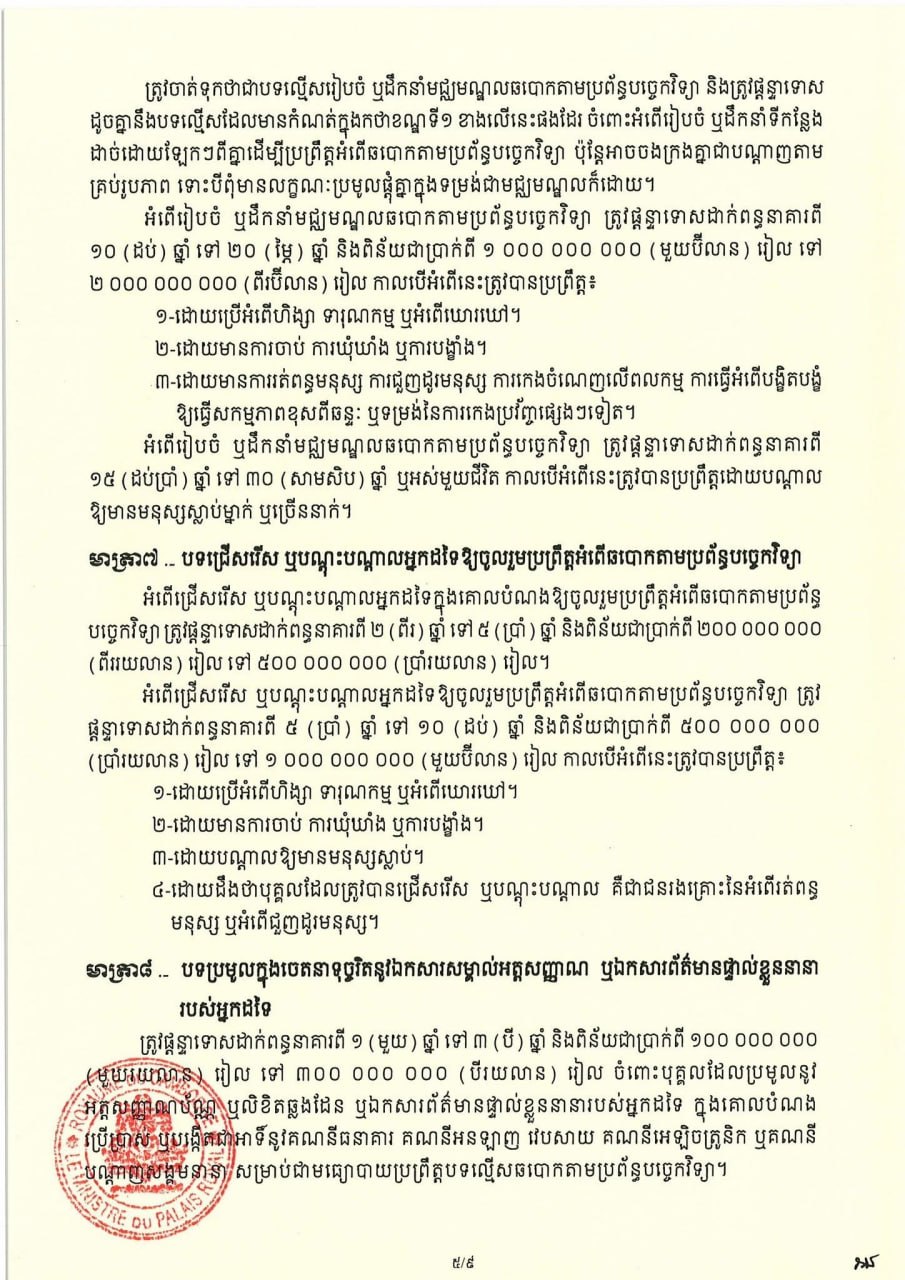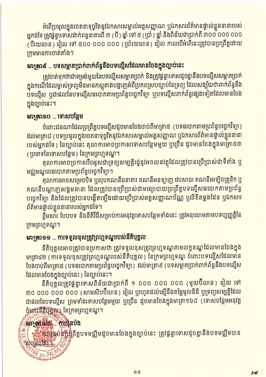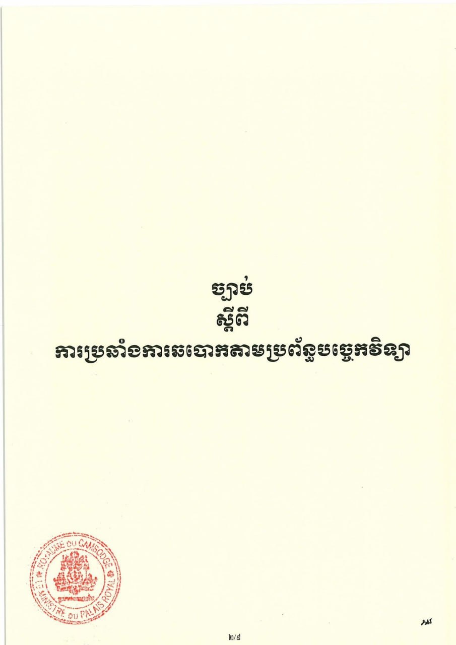 សម្តេចតេជោ ហ៊ុន សែន ប្រមុខរដ្ឋស្តីទី ចេញព្រះរាជក្រមប្រកាសឱ្យប្រើច្បាប់ស្តីពីការប្រឆាំងការឆបោកតាមប្រព័ន្ធបច្ចេកវិទ្យា