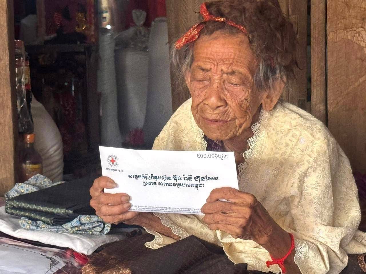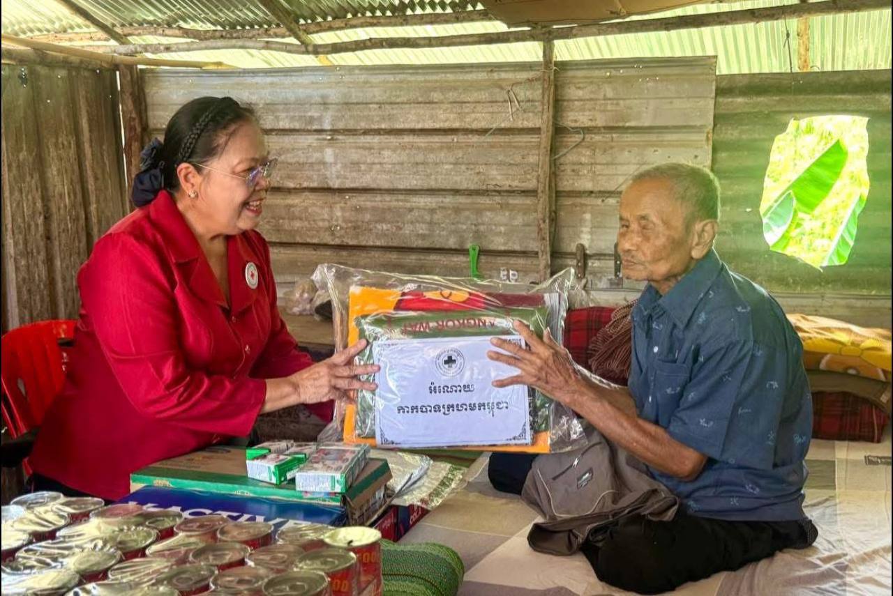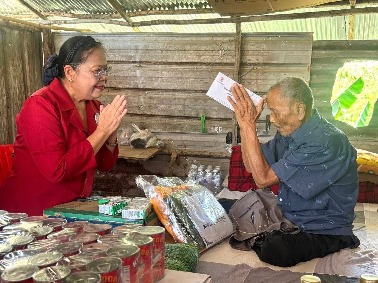 កំពង់ស្ពឺ៖ ដោយក្តីអាណិតអាសូរជាពន់ពេក មាតាមនុស្សធម៌ សម្តេចកិត្តិព្រឹទ្ធបណ្ឌិត ប៊ុន រ៉ានី ហ៊ុនសែន ប្រធានកាកបាទក្រហមកម្ពុជា នៅថ្ងៃទី៧ ខែមេសា ឆ្នាំ២០២៦ បានចាត់ឱ្យលោកជំទាវ ម៉ែន នារីសោភ័គ អគ្គលេខាធិការរងទី១ កាកបាទក្រហមកម្ពុជា រួមជាមួយសាខាកាកបាទក្រហមកម្ពុជា ខេត្តកំពង់ស្ពឺ ចុះសួរសុខទុក្ខ និងនាំយកអំណោយមនុស្សធម៌ ជាគ្រឿងឧបភោគបរិភោគ និងថវិកាមួយចំនួន ជូនដល់លោកយាយ ខៀវ អែង អាយុ ៨៨ឆ្នាំ ជាចាស់ជរាគ្មានទីពឹង រស់នៅភូមិអង្គសេរី សង្កាត់រកាធំ ក្រុងច្បារមន ខេត្តកំពង់ស្ពឺ និងលោកតា ប៉ែន ប៉ុន អាយុ១០២ឆ្នាំ រស់នៅក្រុងច្បារមន ខេត្តកំពង់ស្ពឺ។