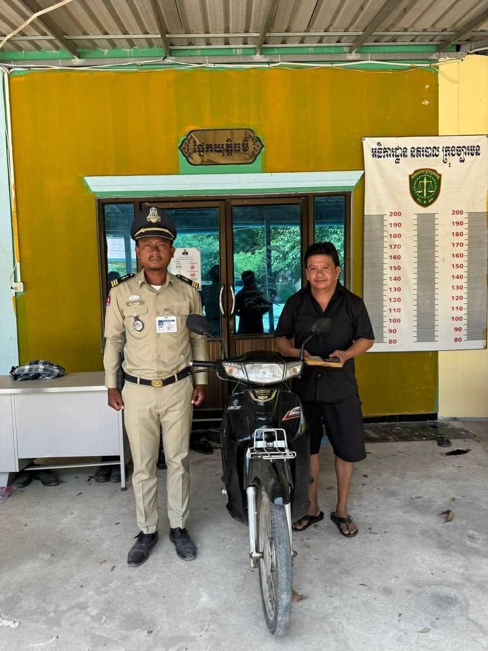 ចំណែកម៉ូតូដែលជនសង្ស័យលួចនោះ ត្រូវបាន នគរបាលក្រុងច្បារមន ប្រគល់ជូនម្ចាស់ដើមវិញ ។