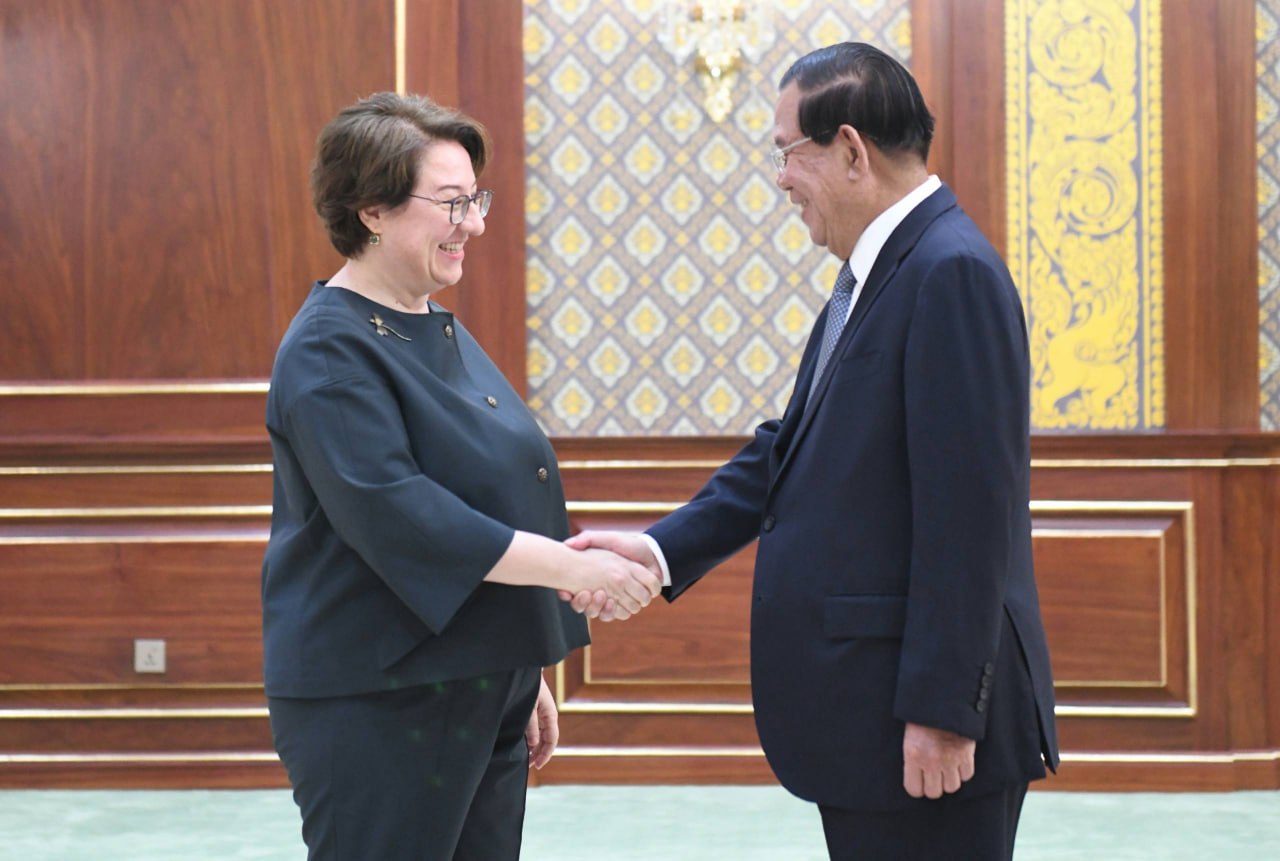 សម្ដេចអគ្គមហាសេនាបតីតេជោ ហ៊ុន សែន ប្រមុខរដ្ឋស្តីទី នៃព្រះរាជាណាចក្រកម្ពុជា អនុញ្ញ្ញាតជូន លោកជំទាវ Ulku Kocaefe ឯកអគ្គរដ្ឋទូតនៃសាធារណរដ្ឋតួកគីយ៉េ ដែលនឹងត្រូវបញ្ចប់បេសកកម្មការទូតប្រចាំព្រះរាជាណាចក្រកម្ពុជា ចូលជួបសម្តែងការគួរសម និងជម្រាបលា នៅវិមានសាមគ្គីភាព នៃព្រឹទ្ធសភា រាជធានីភ្នំពេញ នាព្រឹកថ្ងៃទី០៨ ខែមេសាឆ្នាំ២០២៦។