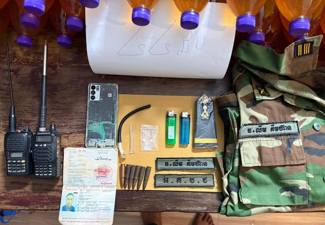 លោកអធិការបន្តថា ជនសង្ស័យនិងជាអ្នកបើកបរ ឈ្មោះ លីម ហ៊ាន ភេទប្រុស អាយុ៤៥ឆ្នាំ នៅភូមិថ្នល់បត់ ឃុំអូរបីជាន់ ស្រុកអូរជ្រៅ ខេត្តបន្ទាយមានជ័យ ក្នុងការត្រួតពិនិត្យនេះ រកឃើញម្សៅក្រាមពណ៌សរថ្លា(សង្ស័យសារធាតុញៀន)ចំនួន១ថង់តូច បំពង់កែវសម្រាប់ជក់១ដើម ទឹកកាធុមចំនួន៤៤ដប គ្រាប់កាំភ្លើងAK៤៧ចំនួន៦គ្រាប់ ដែកកេះ២ដើម វិទ្យុទាក់ទង(អាយកូម)ចំនួន២គ្រឿង ទូរសព្ទដៃ១គ្រឿង អាវយោធា(ទាហ៊ាន)១អាវ ស្លាកឈ្មោះចំនួន២ និងលិខិតឆ្លងដែនចំនួន១ ហើយបានធ្វើតេស្តរកសារធាតុញៀនជនសង្ស័យខាងលើលទ្ធផលវិជ្ជមាន(+)ផងដែរ៕