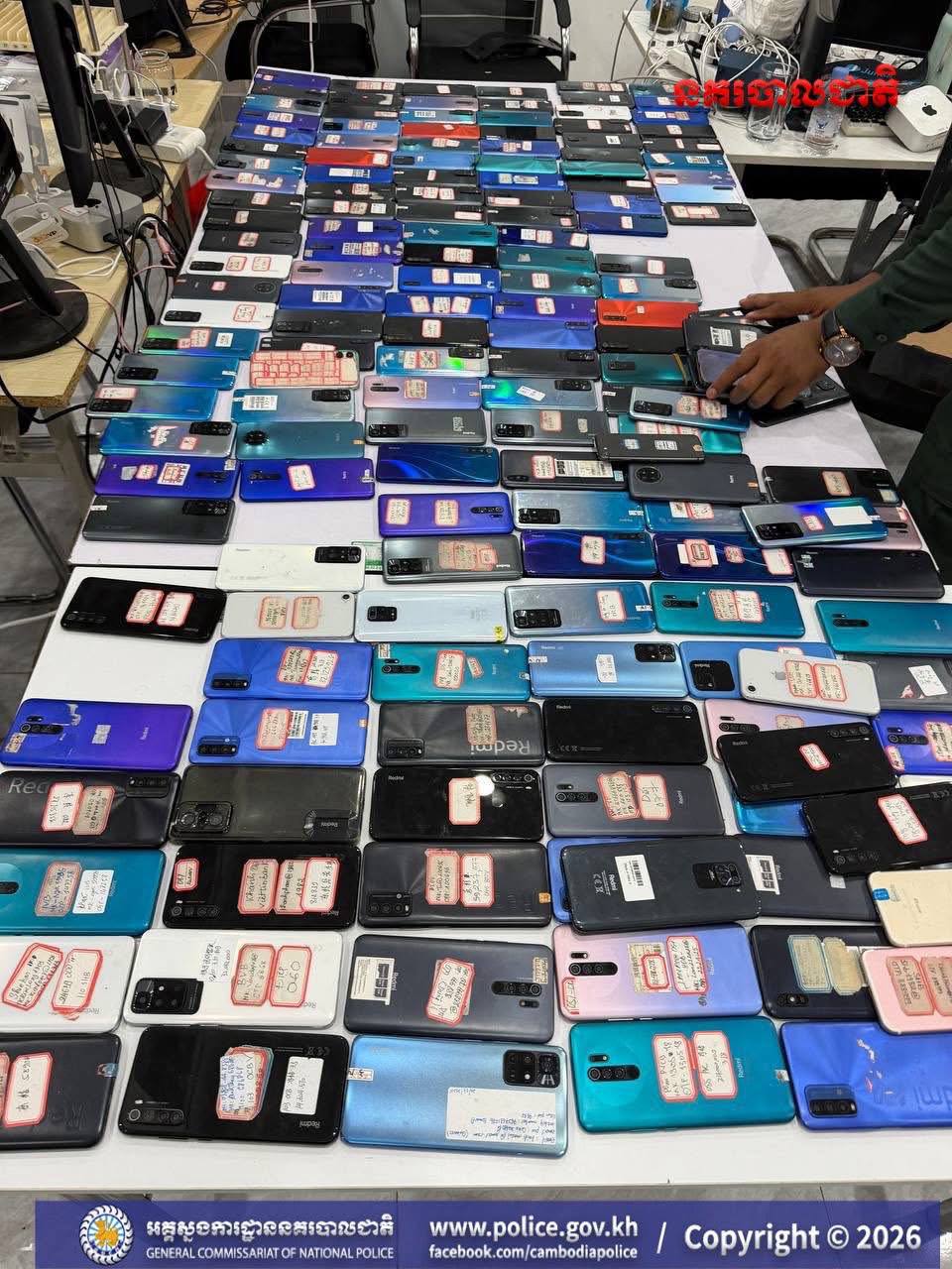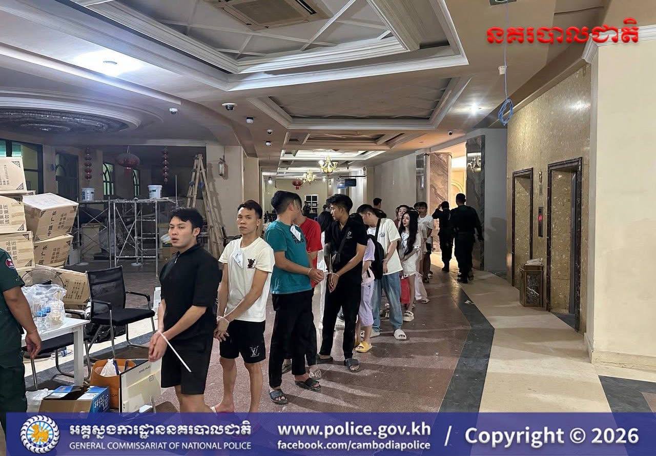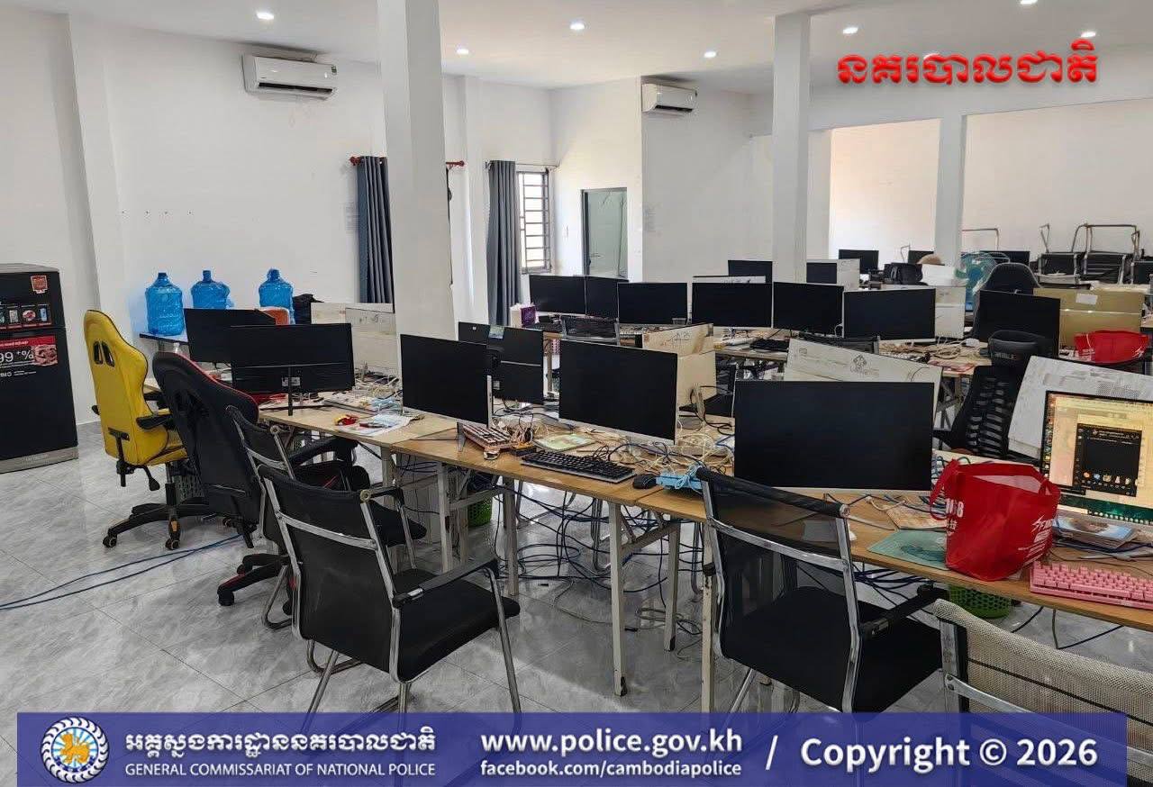 (ស្វាយរៀង)៖ នៅថ្ងៃទី៧ ខែមេសា ឆ្នាំ២០២៦ ក្រុមប្រតិបត្តិការចម្រុះ ដឹកនាំដោយ លោកឧត្តមសេនីយ៍ឯកហែម សុវត្ថិ អគ្គស្នងការរងទទួលដឹកនាំការងារប្រឆាំងបទល្មើសល្បែងពាណិជ្ជកម្ម និងមានការដឹកនាំសម្របសម្រួលនីតិវិធីពី លោក ខាំ សុផារី ព្រះរាជអាជ្ញា និងលោក ដូរ៉ាអង្គប្រទាន ព្រះរាជអាជ្ញារងនៃអយ្យការអមសាលាដំបូងខេត្តស្វាយរៀង និងដោយមានការចូលរួមសហការពីកម្លាំងនៃស្នងការដ្ឋាននគរបាលខេត្តស្វាយរៀង បានបង្ក្រាបទីតាំងចំនួន៩ ពាក់ព័ន្ធការលបលួចធ្វើអាជីវកម្មអនឡាញខុសច្បាប់ (Online Scams) ក្នុងនោះ មាន២ទីតាំង ជាកាស៊ីណូ និង៧ទីតាំង ជាប្រភេទផ្ទះល្វែង។