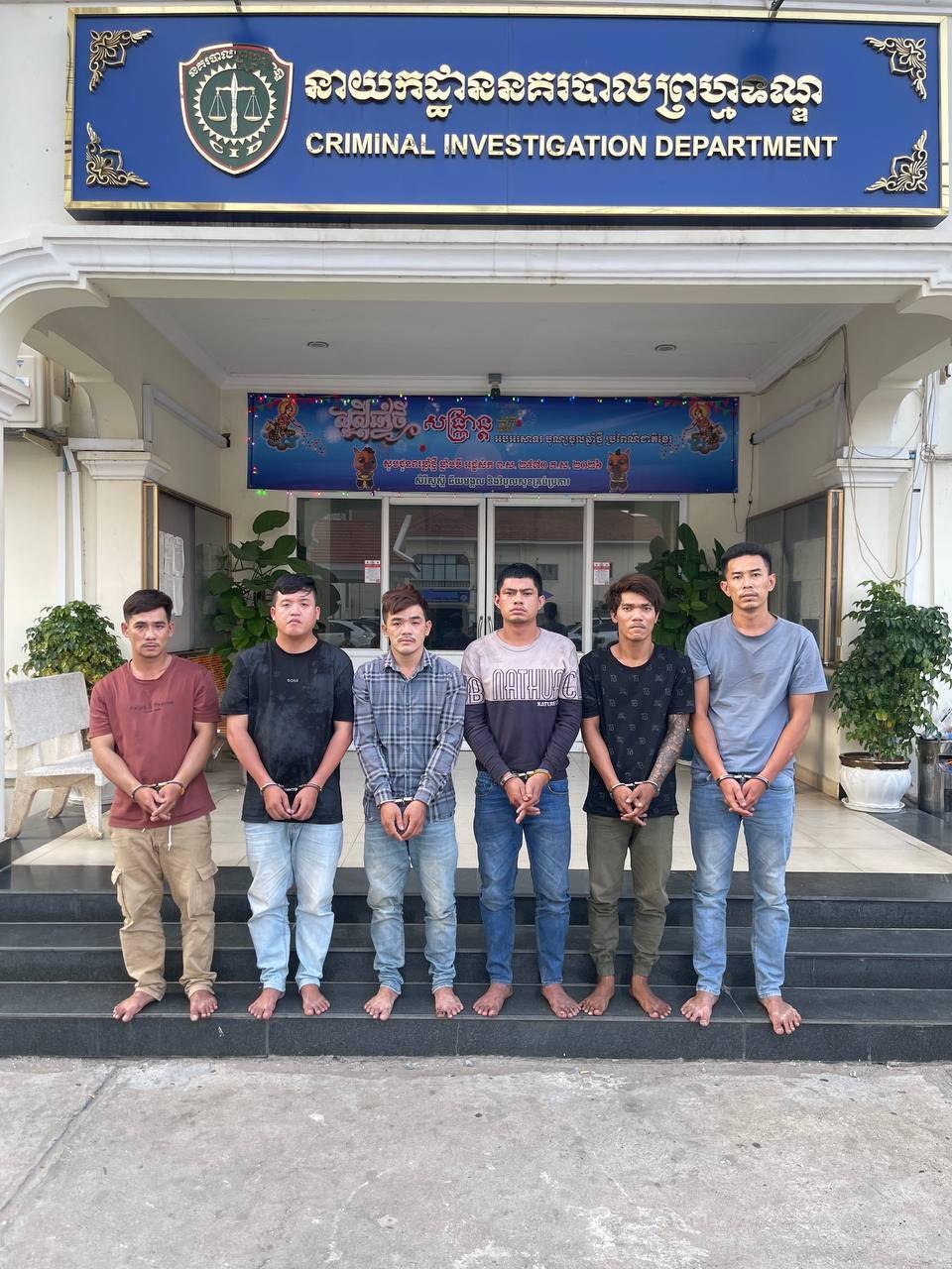 ដោយអនុវត្តតាមបទបញ្ជារបស់លោកឧត្តមសេនីយ៍ឯក ង៉េង ជួ ប្រធាននាយកដ្ឋាននគរបាលព្រហ្មទណ្ឌ នៅថ្ងៃទី០៨ ខែមេសា ឆ្នាំ២០២៦ វេលាម៉ោង០០:០៥នាទីអាធ្រាត លោកឧត្តមសេនីយ៍ត្រី ប៊ុត វណ្ណារដ្ឋ អនុប្រធាននាយកដ្ឋាន ចូលរួមដោយលោកវរសេនីយ៍ឯក ញ៉ែម វ៉ន នាយការិយាល័យ និងលោកវរសេនីយ៍ទោ ប៊ុត ស៊ីម៉េង នាយការិយាល័យបានដឹកនាំកម្លាំងជំនាញធ្វើការឃាត់ខ្លួនជនសង្ស័យចំនួន៦នាក់។
