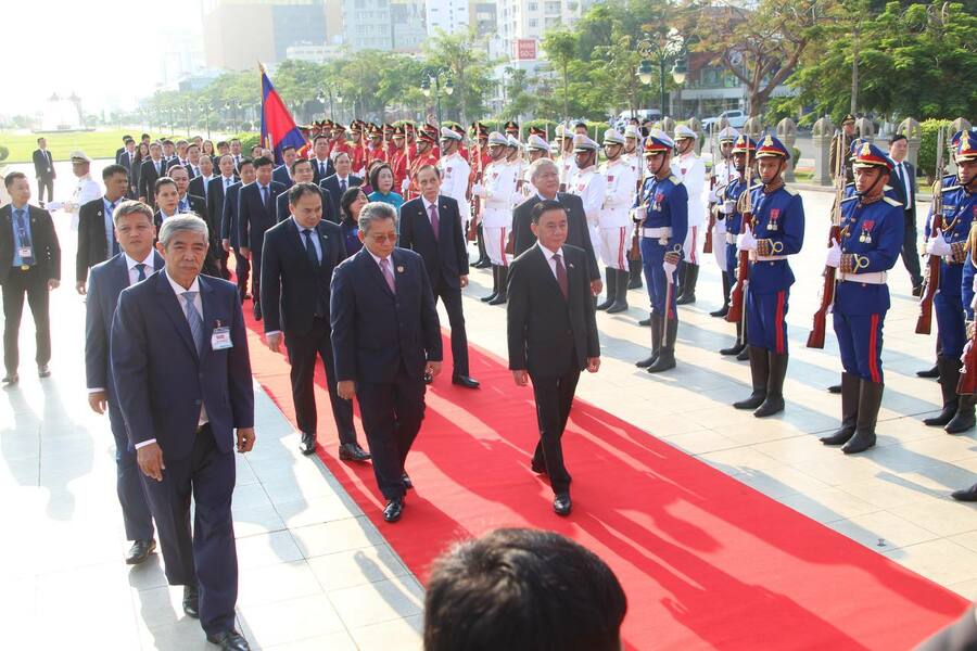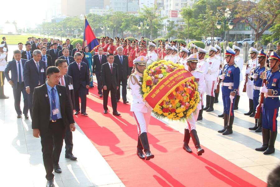 ឯកឧត្តម ត្រិន កឹមទូ សមាជិកការិយាល័យនយោបាយ និងជាសមាជិកប្រចាំការគណៈលេខាធិការមជ្ឈិមបក្សកុម្មុយនីស្តវៀតណាម អញ្ជើញថ្វាយកម្រងផ្កាគោរពព្រះវិញ្ញាណក្ខន្ធនៅមណ្ឌបព្រះបរមរូប «ព្រះបរមរតនកោដ្ឋ»