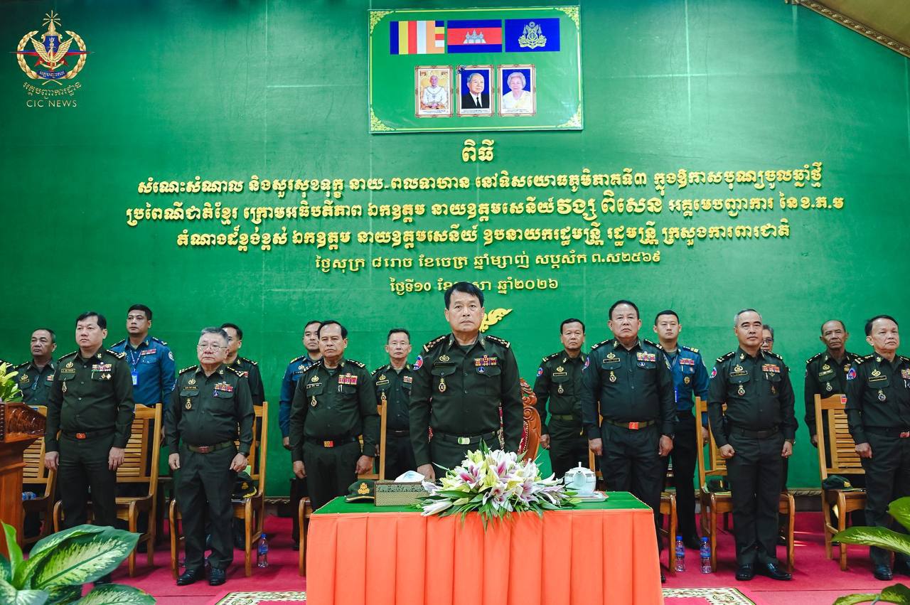 កំពង់ស្ពឺ៖ ពិធីបុណ្យចូលឆ្នាំថ្មីប្រពៃណីជាតិខ្មែរ ខិតចូលមកដល់នាថ្ងៃខាងមុខនេះ នៅថ្ងៃទី១០ ខែមេសា ឆ្នាំ២០២៦ ឯកឧត្តម នាយឧត្តមសេនីយ៍ វង្ស ពិសេន អគ្គមេបញ្ជាការ នៃកងយោធពលខេមរភូមិន្ទ តំណាងដ៏ខ្ពង់ខ្ពស់ ឯកឧត្ដម នាយឧត្ដមសេនីយ៍ ទៀ សីហា ឧបនាយករដ្ឋមន្ត្រី រដ្ឋមន្ត្រីក្រសួងការពារជាតិ បានអញ្ជើញចុះជួបសំណេះសំណាល និងសួរសុខទុក្ខដល់នាយទាហាន នាយទាហានរង និងពលទាហាន កំពុងបំពេញភារកិច្ចការពារជាតិ នៅទិសយោធភូមិភាគទី៣។