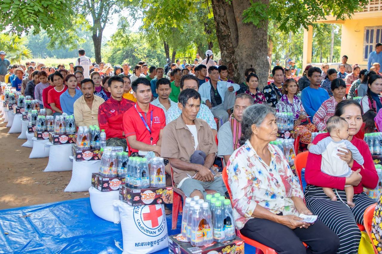 សម្ភារៈផ្តល់ជូនគ្រួសារនីមួយៗរួមមាន៖ អង្ករ២៥គីឡូក្រាម មី១កេស ទឹកត្រី១យួរ ទឹកស៊ីអ៊ីវ១យួរ និងថវិកាមួយចំនួនផងដែរ៕