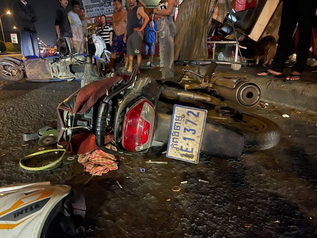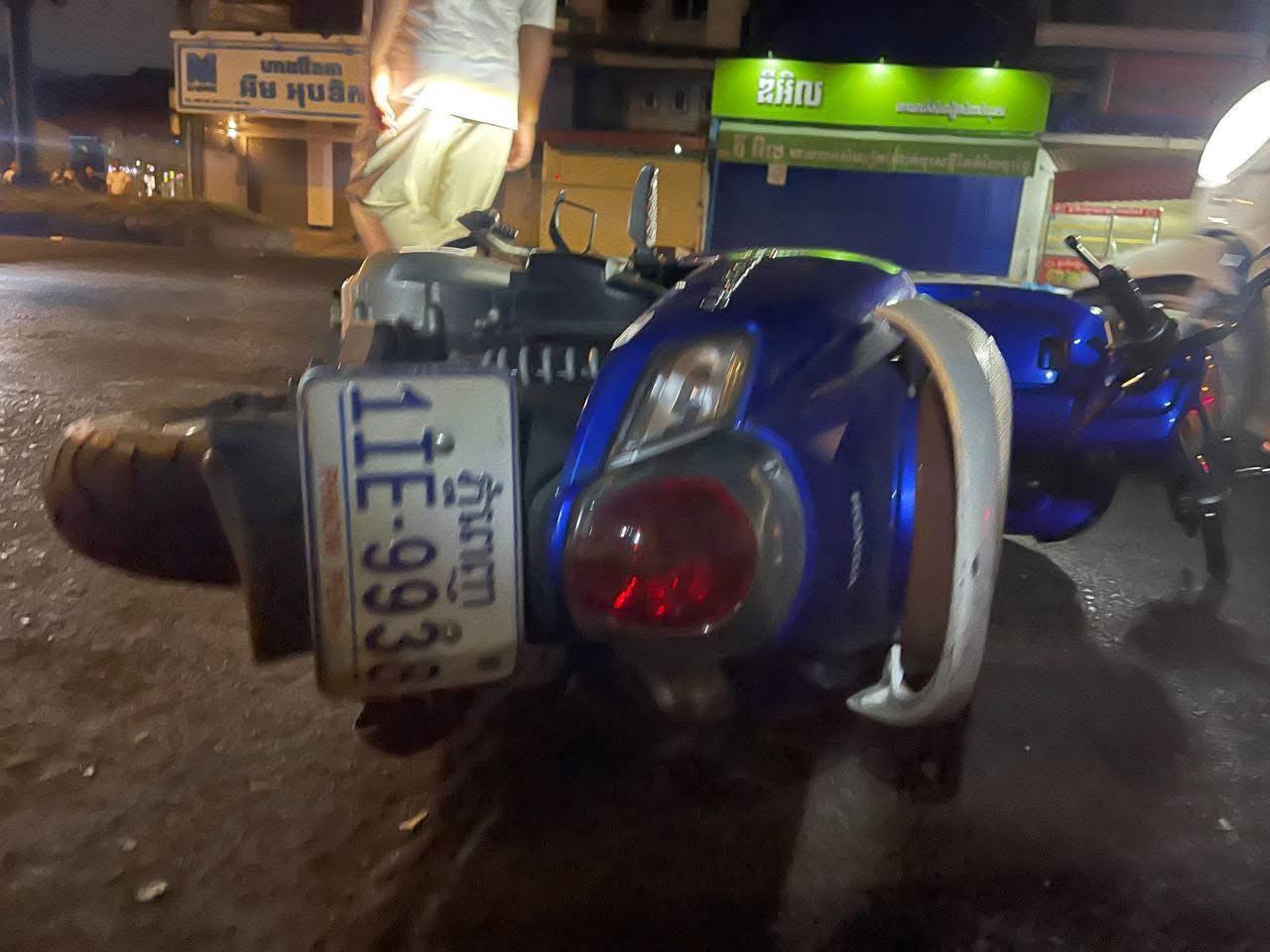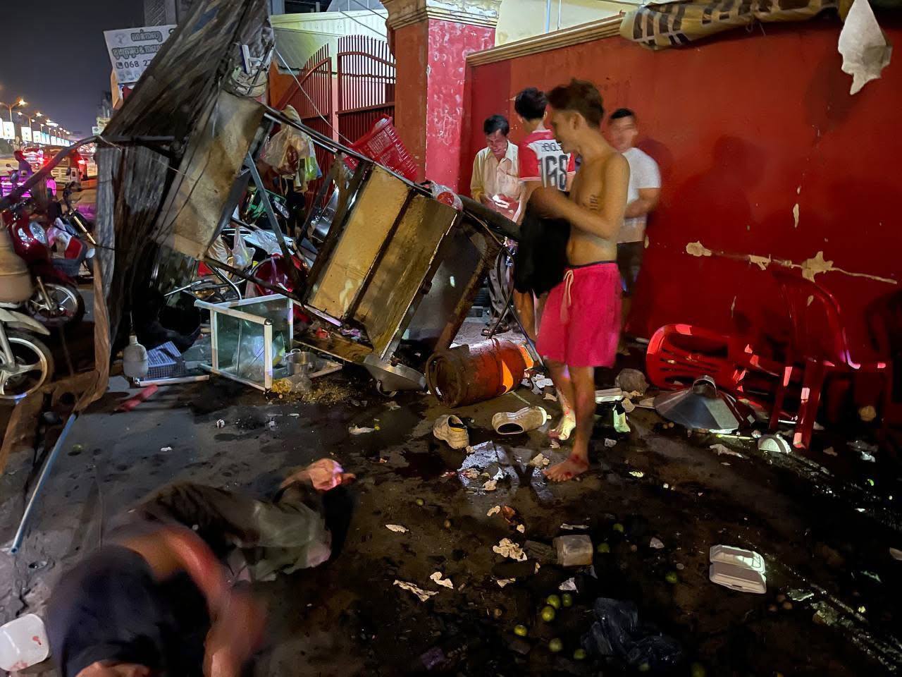 រថយន្តមួយគ្រឿង បើកបុកកន្លែងលក់មីឆា ហើយបើករត់គេចបាត់ នៅខណ្ឌមានជ័យ នៅសល់តែជនរងគ្រោះពីរនាក់ ម៉ូតូ 3 គ្រឿងរបួសធ្ងន់ម្នាក់ស្រាលម្នាក់
