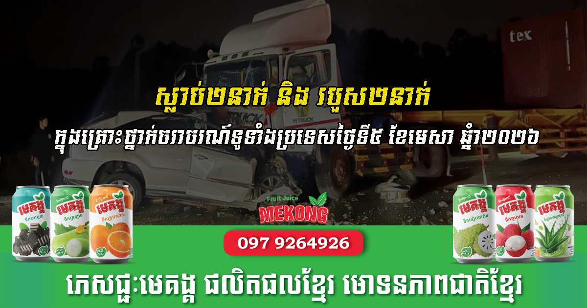 ស្លាប់២នាក់ និងរបួស២នាក់ ក្នុងគ្រោះថ្នាក់ចរាចរណ៍ទូទាំងប្រទេសថ្ងៃទី៥ ខែមេសា ឆ្នំា២០២៦