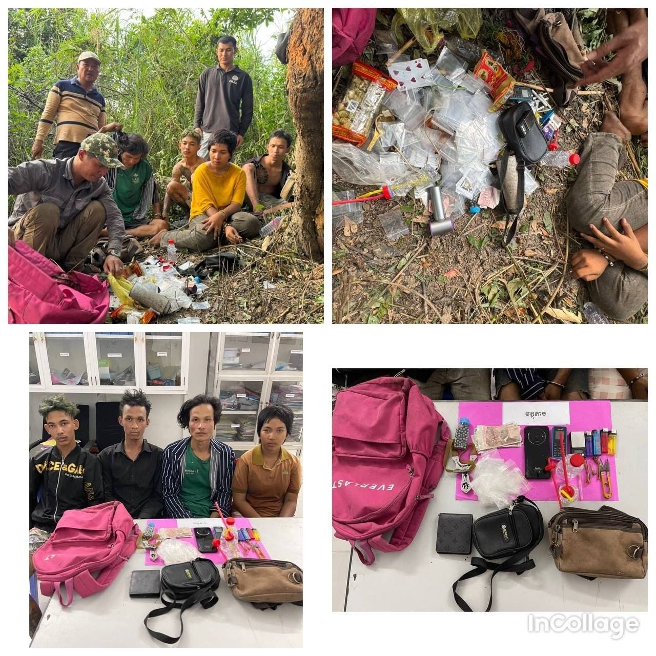 ប្រភពដដែលបានបន្តថា មុនពេលឈានដល់ការបង្ក្រាប កម្លាំងសមត្ថកិច្ចទទួលបានសេចក្ដីរាយការណ៍ពីប្រជាពលរដ្ឋថា មានមុខសញ្ញាកំពុងធ្វើសកម្មភាពលក់ចែកចាយថ្នាំញៀននៅចំណុចព្រៃខាងលើ។ ភ្លាមៗនោះ កម្លាំងជំនាញស្រុកបានសហការជាមួយប៉ុស្តិ៍រដ្ឋបាល ចុះទៅដល់ទីតាំងក៏ប្រទះឃើញជនសង្ស័យកំពុងប្រមូលផ្ដុំគ្នា។ គ្រាន់តែឃើញសមត្ថកិច្ចភ្លាម ក្រុមជនសង្ស័យបានបំបែកហ្វូងរត់គេចខ្លួន តែសមត្ថកិច្ចបានដេញតាមឃាត់ខ្លួនបាន ៤នាក់ ខណៈ ៤នាក់ទៀតបានរត់គេចខ្លួនបាត់ ដោយបន្សល់ទុកវត្ថុតាងនៅកន្លែងកើតហេតុ។