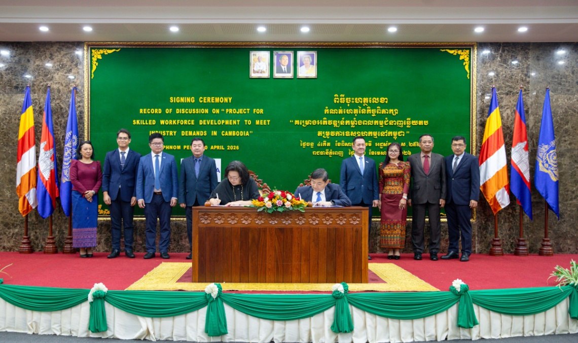 (ភ្នំពេញ)៖ ឯកឧត្ដម ហេង សួរ រដ្ឋមន្ត្រីក្រសួងការងារ និងបណ្ដុះបណ្ដាលវិជ្ជាជីវៈ និងលោកស្រី ឆយ ម៉ូន ជុង (CHOI Moon Jung) នាយិកាទីភ្នាក់ងារសហប្រតិបត្តិការអន្តរជាតិកូរ៉េ (KOICA) ប្រចាំកម្ពុជាបានចុះហត្ថលេខាលើកំណត់ហេតុនៃកិច្ចពិភាក្សាស្តីពី “គម្រោងអភិវឌ្ឍកម្លាំងពលកម្មជំនាញ ដើម្បីឆ្លើយតបតម្រូវការឧស្សាហកម្មនៅកម្ពុជា” នារសៀលថ្ងៃទី២០ ខែមេសា ឆ្នាំ២០២៦ នៅទីស្តីការក្រសួង ក្នុងគោលដៅបណ្តុះបណ្តាលកម្លាំងពលកម្មនៅកម្ពុជាឱ្យកាន់តែមានជំនាញ ដើម្បីបំពេញតម្រូវការទីផ្សារការងារទាំងនៅកម្ពុជា និងសាធារណរដ្ឋកូរ៉េ តាមរយៈការពង្រឹងសមត្ថភាពប្រព័ន្ធ TVET នៅវិទ្យាស្ថាន TVET ចំនួន ៣ គឺ វិទ្យាស្ថានជាតិពហុបច្ចេកទេសកម្ពុជា (NPIC) វិទ្យាស្ថានពហុបច្ចេកទេសព្រះកុសុមៈ (PPI) និងវិទ្យាស្ថានបច្ចេកទេសឧស្សាហកម្ម (ITI)។