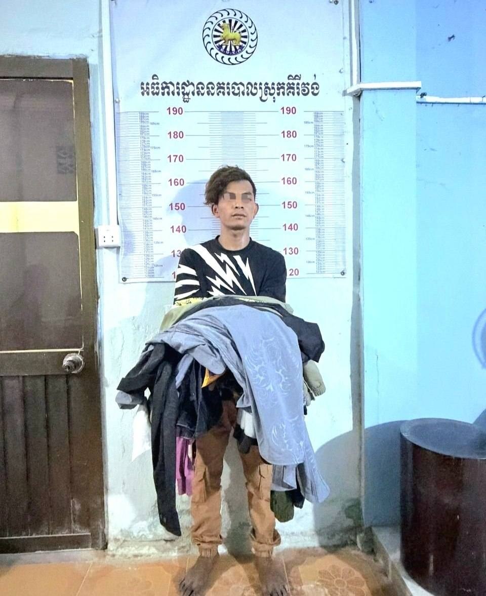 ស្រុកគិរីវង់ ៖ នៅថ្ងៃចន្ទ៤កើត ខែពិសាខ ឆ្នាំមមី អដ្ឋស័ក ព.ស២៥៦៩ ត្រូវនឹងថ្ងៃទី២០ ខែមេសា ឆ្នាំ២០២៦ សមត្ថកិច្ចយើងបានទទួលពាក្យបណ្តឹងរបស់ជនរងគ្រោះឈ្មោះ សុទ្ធ ឆលីហ៊ាង ភេទប្រុស អាយុ២៧ឆ្នាំ មុខរបរ លក់ខោអាវ រស់នៅភូមិកំពង់ថ្មី ឃុំព្រះបាទជាន់ជុំ ស្រុកគិរីវង់ ខេត្តតាកែវ ដែលបានប្តឹងទៅលើក្រុមជនសង្ស័យមានស្គាល់អត្តសញ្ញាណ បានធ្វើសកម្មភាពកាត់ដំបូលតូបស័ង្កសីចូលលួចយកខោអាវអស់មួយចំនួនធំ នៅចំណុចផ្សារទន្លាប់(ផ្សារចាស់) ក្រោយពីសមត្ថកិច្ចយើងទទួលបានពាក្យបណ្តឹងភ្លាម លោកវរសេនីយ៍ឯក ជា សុផល អធិការនគរបាលស្រុកគិរីវង់ បានសុំយោបល់និងគោលការណ៍ណែនាំពីសំណាក់លោកឧត្តមសេនីយ៍ទោ ម៉ែន លី ស្នងការនគរបាលខេត្តតាកែវ និងមានការសម្របសម្រួលនីតិវិធីពីឯកឧត្តមព្រះរាជអាជ្ញាអមសាលាដំបូងខេត្តតាកែវ ។