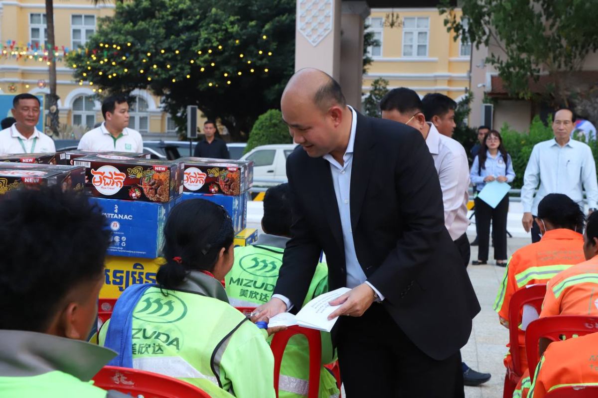បុគ្គលិកសម្អាតអនាម័យ និងប្រជាការពារ ដែលបានបោសសម្អាតអនាម័យក្នុងព្រឹត្តិការណ៍នគរសង្ក្រាន្ត បានទទួលអំណោយជាថវិកា និងគ្រឿងឧបភោគបរិភោគពីថ្នាក់ដឹកនាំ។