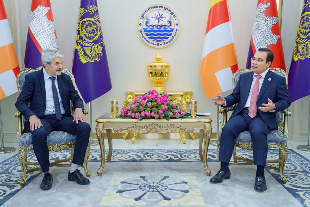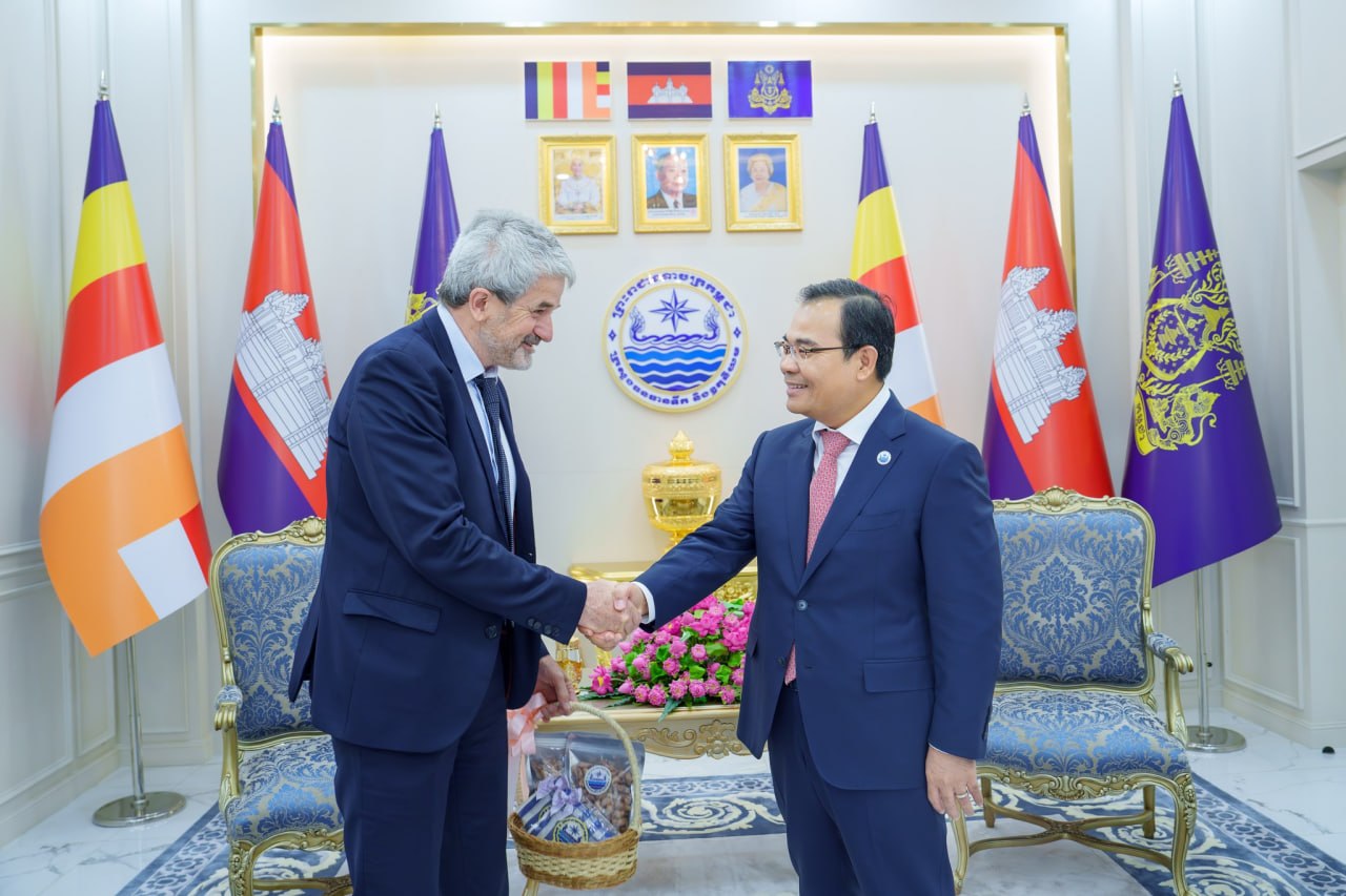 (ភ្នំពេញ)៖ នាព្រឹកថ្ងៃសុក្រ ទី២៤ ខែមេសា ឆ្នាំ២០២៦ នៅទីស្ដីការក្រសួង លោក ថោ ជេដ្ឋា រដ្ឋមន្ត្រីក្រសួងធនធានទឹក និងឧតុនិយម បានអនុញ្ញាតឱ្យលោក Gilles Rocquelain នាយកប្រតិបត្តិនៃក្រុមហ៊ុនបារាំង BRL Ingénierie និងគណៈប្រតិភូ ចូលជួបសម្តែងការគួរសម និងពិភាក្សាការងារ ដើម្បីស្វែងយល់ពីកាលានុវត្តភាព និងពង្រីកកិច្ចសហប្រតិបត្តិការលើការគ្រប់គ្រងធនធានទឹក និងការឆ្លើយតបទៅនឹងការប្រែប្រួលអាកាសធាតុនៅកម្ពុជា។
