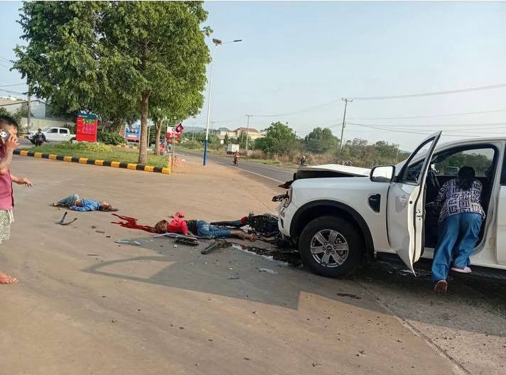 គ្រោះថ្នាក់ចរាចរណ៍ រវាងរថយន្តមួយគ្រឿង និងម៉ូតូ នៅក្រុងសែនមនោរម្យ បណ្តាលឱ្យយុវជន ២នាក់ ស្លាប់ភ្លាមៗ