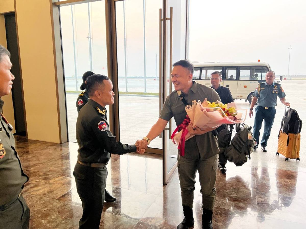 កាលពីថ្ងៃទី២៥ ខែមេសា ឆ្នាំ២០២៦ វេលាម៉ោង ១៧:២៥នាទីរសៀល នៅអាកាសយានដ្ឋានអន្តរជាតិតេជោ នាយទាហាន នៃនាយកដ្ឋានទាក់ទងអន្តរជាតិ និងក្រុមអ្នកសម្របសម្រួល (CLG) នៃព្រះរាជាណាចក្រកម្ពុជា បានសូមស្វាគមន៍យ៉ាងកក់ក្តៅបំផុតចំពោះប្រទេសឥណ្ឌូនេស៊ី ដែលបានចាត់បញ្ជូននាយទាហានបន្តវេនចំនួនពីរ (២) រូប (វរសេនីយ៍ទោ DEVI IBROHIM និងវរសេនីយ៍ត្រី RANGGA HADI SAPUTRA ចូលរួមជាមួយក្រុមអ្នកសង្កេតការណ៍អាស៊ាន (AOT) ប្រចាំព្រះរាជាណាចក្រកម្ពុជា ដែលដឹកនាំដោយប្រទេសហ្វីលីពីនក្នុងនាមជាប្រធានអាស៊ាន ដើម្បីចុះសង្កេតការណ៍ ផ្ទៀងផ្ទាត់ និងធានាការអនុវត្តប្រកបដោយប្រសិទ្ធភាពលើវិធានការទាំងអស់ក្នុងសេចក្តីប្រកាសរួម។ នេះបើតាមសេចក្តីប្រកាសព័ត៌មានរបស់លោកជំទាវ ឧត្តមសេនីយ៍ឯក ម៉ាលី សុជាតា អ្នកនាំពាក្យក្រសួងការពារជាតិកម្ពុជា។