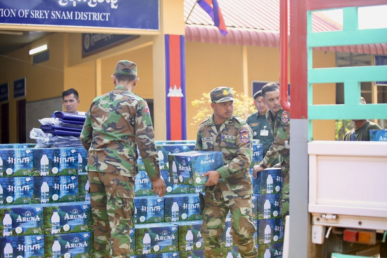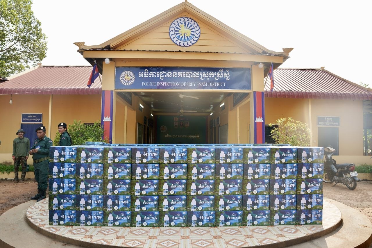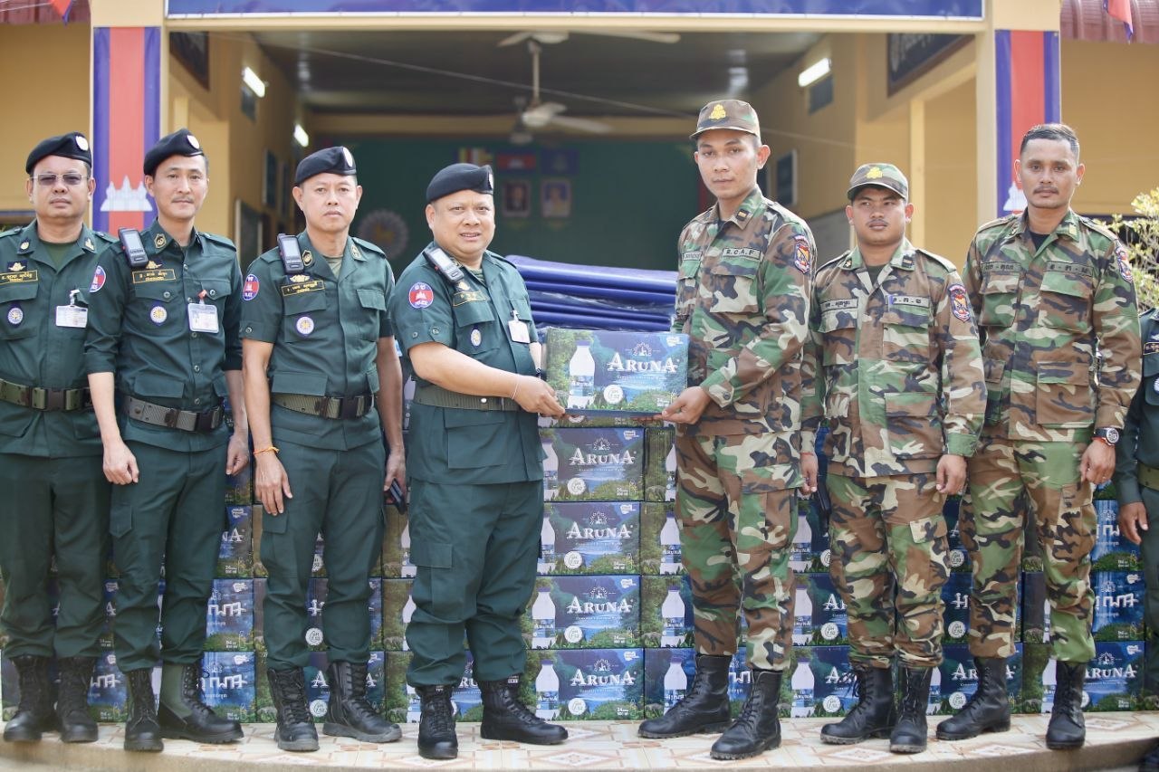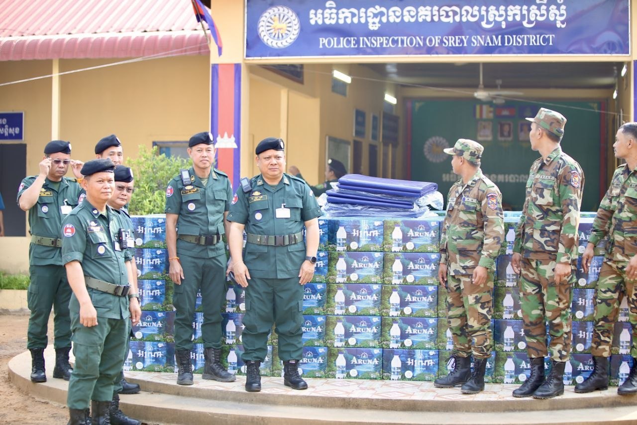 (សៀមរាប)៖ នៅរសៀលថ្ងៃសៅរ៍ ទី២៥ ខែមេសា ឆ្នាំ២០២៦ នៅអធិការដ្ឋាននគរបាលស្រុកស្រីស្នំ លោកឧត្តមសេនីយ៍ទោ ហួត សុធី ស្នងការ នៃស្នងការដ្ឋាននគរបាលខេត្តសៀមរាប បានដឹកនាំសហការីនាំយកទឹកបរិសុទ្ធចំនួន ៥០០កេះធំ និងតង់កៅស៊ូ ចំនួន៥ ប្រគល់ជូនកងទ័ពជួរមុខក្នុងខេត្តឧត្តរមានជ័យ។
