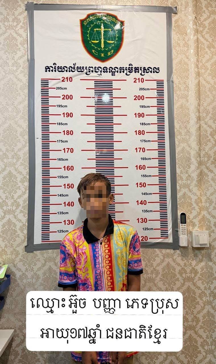 ភ្នំពេញ៖ នៅថ្ងៃទី២៤ ខែមេសា ឆ្នាំ២០២៦ ឈ្មោះ រិន បញ្ញា ភេទប្រុស អាយុ២៧ឆ្នាំ ជនជាតិខ្មែរ បានមកដាក់ពាក្យបណ្ដឹង នៅការិយាល័យព្រហ្មទណ្ឌកម្រិតស្រាល នៅថ្ងៃខែឆ្នាំដដែលត្រង់ចំណុចភូមិថ្មគោល សង្កាត់ចោមចៅទី១ ខណ្ឌពោធិ៍សែនជ័យ រាជធានីភ្នំពេញ កម្លាំងជំនាញការិយាល័យព្រហ្មទណ្ឌកម្រិតស្រាល បានស៊ើបអង្កេតស្រាជ្រាវ និងឃាត់ខ្លួនជនសង្ស័យចំនួន១នាក់ ឈ្មោះ អួច បញ្ញា អាយុ១៧ឆ្នាំ ជនជាតិខ្មែរ ស្នាក់នៅភូមិថ្មគោល២ សង្កាត់ចោមចៅទី២ ខណ្ឌពោធិ៍សែនជ័យ រាជធានីភ្នំពេញ។