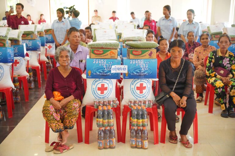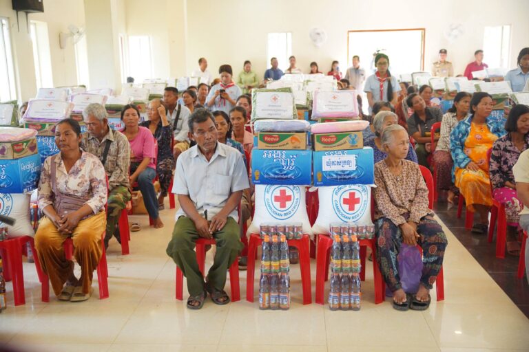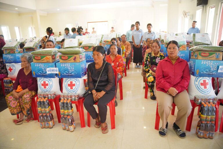 សូមបញ្ជាក់ថា គ្រួសារនីមួយៗទទួលបានអំណោយ រួមមាន៖ អង្ករ ២៥គីឡូក្រាម មី ១កេស ទឹកត្រី១យួ ទឹកស៊ីអ៉ីវ១យួរ ទឹកបរិសុទ្ធ ១កេស និងត្រីខ១០កំប៉ុង ឃីត១កញ្ចប់ (មុង ក្រមា) ដោយឡែកគ្រួសារងគ្រោះរលំទាំងស្រុងបន្ថែម សំពត់តង១ និងថវិកាមួយចំនួនផងដែរ៕