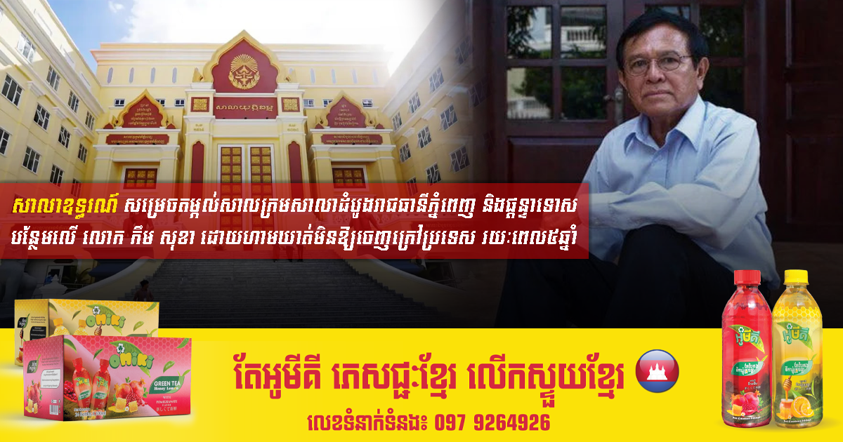 សាលាឧទ្ធរណ៍ សម្រេចតម្កល់សាលក្រមសាលាដំបូងរាជធានីភ្នំពេញ និងផ្តន្ទាទោសបន្ថែមលើ លោក កឹម សុខា ដោយហាមឃាត់មិនឱ្យចេញក្រៅប្រទេស រយៈពេល៥ឆ្នាំ